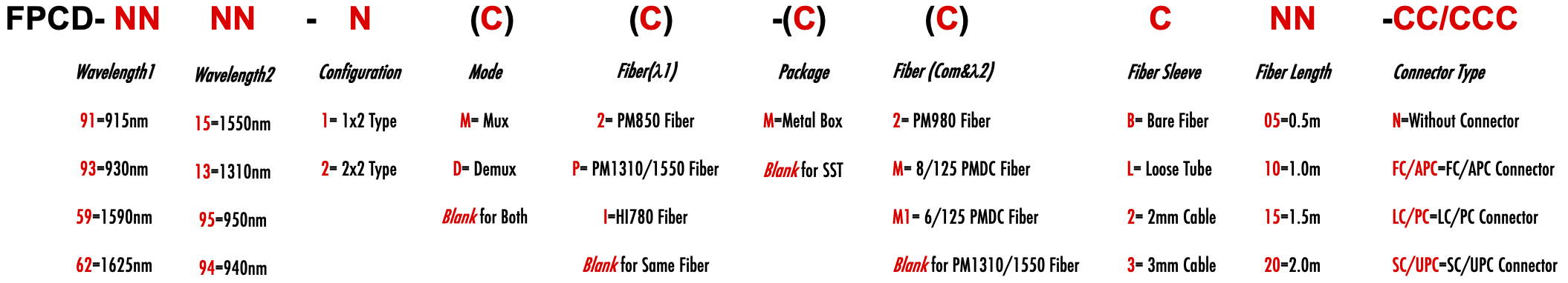 FPCD 950nm 945nm 955nm 1590nm fused WDM Wavelength division Multiplex demultiplex coupler splitter and combiner for high optical power and pulse optical power with Fused Biconical Taper (FBT) technology Stopiony sprz??enie multipleksuj?ce WDM z podzia?em fali, rozdzielacz mocy optycznej o wysokiej mocy optycznej i impulsowej oraz zespó?, wykorzystuj?cy technologi? stopionego podwójnego sto?ka (FBT) Schmelzen WDM-Wellenkomponenten-Multiplexe-Multiplexe Kupplung Hochleistungsoptische und Pulsoptische Leistung Separatoren und Kombinatoren mit Schmelzen Doppelkegel-Technologie (FBT) Smeltet WDM Wave Division Multiplexing Coupler med høj optisk effekt og pulserende optisk effektdelinger og kombinatorer, der anvender teknologi med smeltet dobbelt tilspidsning (FBT) Fusion WDM Division d'ondes multiplexé couplage haute puissance optique et pulsé séparateur de puissance optique et combinateur, utilisant la technologie à double cône fusionnée (FBT) Sulautettu WDM Wave Division Multiplexing-yhdistelmä, korkea optinen teho ja pulssin optinen virranjakaja ja yhdistelmä, jossa on sulautettu kaksi kartiota (FBT)-tekniikkaa Smeltende WDM Wave Division Multiplexing Coupling High Optical Power Distributor en Pulse Optical Power Divider en Combiner met gesmolten dubbele taps (FBT)-technologie Rozpušt?ní WDM Wave Division Multiplex Coupler High Optical Power Division a Pulse Optical Power Separator a Combinator s technologií Smelted Double Cone (FBT) Fusão WDM Divisão de Ondas Múltiplo Duplicador Acoplador de Potência Óptica de Alta Potência e Pulso Separador de Potência Óptica e Combinador com Tecnologia Fusão Dupla Conica (FBT) Fusión WDM división de onda multiplexado y multiplexado acoplador de alta potencia óptica y pulso separación de potencia óptica y combinador, utilizando tecnología de doble cono fundido (FBT) Fuso WDM divisione d'onda multiplexato accoppiatore di potenza ottica ad alta potenza e separazione di potenza ottica pulsata e combinatore con tecnologia a doppio cono fuso (FBT) PM1550 PM1310 PM1550XP 8/125um 9/125um PM980 PM850 PM780 5/125um 6/125um 1x2 2x2 3-port Y Type 4-port X Type Polarization Maintaining PM Extinction Ratio ER Panda