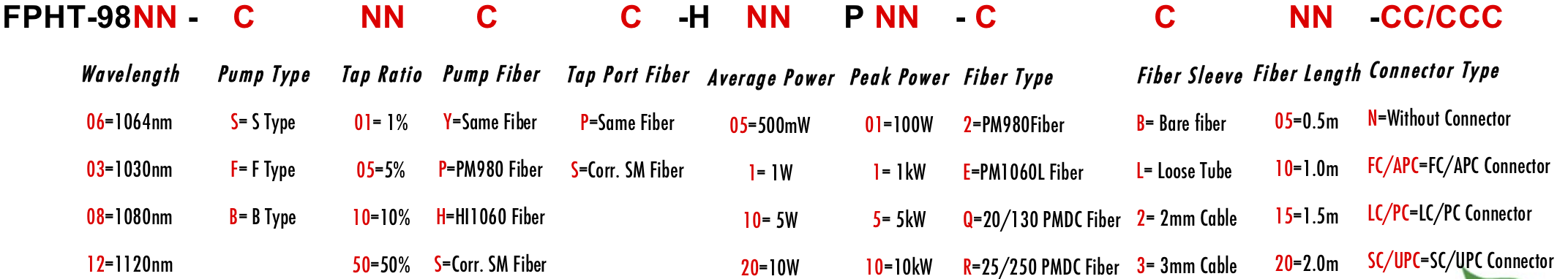 FPHT 980nm 975nm 970nm985nm 990nm 1064nm 1060nm 1050nm 1070nm 1074nm 1065nm 1055nm PM WDM Filter Wavelength division Isolator Hybrid Iso HYB HYBR HY HB isolation isolate isolateur isolater filtre filtro Multiplexer Demux Combiner Divide Splitter Tap Coupler coupleur dieses Acoplador PM980 PM980XP LMA 6/125um 10/125um 10/130um 15/130um 20/125um 20/130um 25/250um PMSC Single Clad Cladding PMDC Double Clad Polarization Maintaining PM Extinction Ratio ER Panda