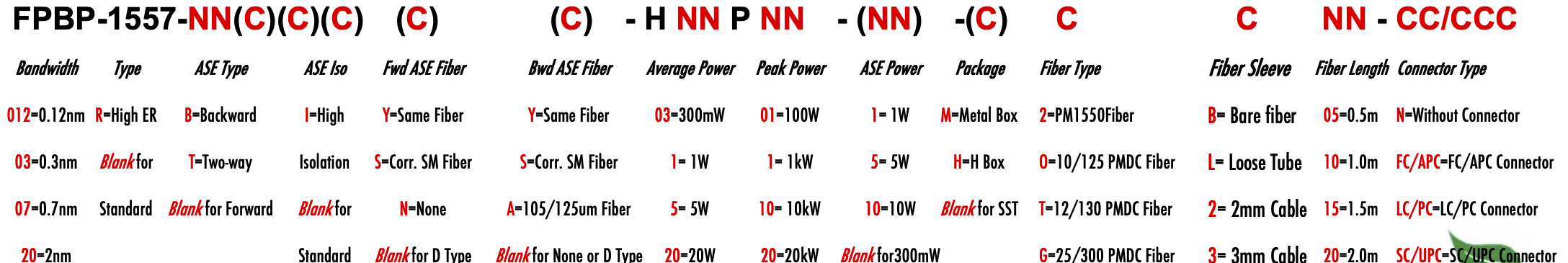 FPBP FPWM 1557nm Singlemode PM Fiber Bandpass Filter Bandwidth 0.12nm 0.3nm 0.7nm 2nm 2.0nm bandstop filter or notch filter with bandwidth filtre passe-bande monomode ou filtre coupe-bande ou filtre coupe-bande avec bande passante filtro de paso de banda monomodo o filtro de supresión de banda o filtro de muesca con ancho de banda Singlemode-Bandpassfilter oder Bandsperrfilter oder Kerbfilter mit Bandbreite filtro passa-banda monomodo ou filtro bandstop ou filtro notch com largura de banda filtro passa-banda monomodale o filtro bandstop o filtro notch con larghezza di banda yksimuotoinen kaistanpäästösuodatin tai kaistanpysäytyssuodatin tai kaistanleveyssuodatin PM1550 LMA 8/125um 10/125um 10/130um 12/125um 12/130um 15/125um 15/130um 20/125um 20/130um 25/250um 25/300um 30/250um SC Single Clad Cladding DC Double Clad or large mode area fiber fibre à simple gaine ou fibre à double gaine ou fibre à grande zone de mode ingle Clad-Faser oder Double Clad-Faser oder Large-Mode-Area-Faser ibra con revestimiento simple o fibra con revestimiento doble o fibra de área modal grande fibra de revestimento simples ou fibra de revestimento duplo ou fibra de área de modo grande ibra a rivestimento singolo o fibra a doppio rivestimento o fibra a grande area modale yksikerroksinen kuitu tai kaksinkertainen kuitu tai suurimuotoinen kuitu 2-port D Type 3-port Y Type 4-port X Type Type D à 2 ports Type Y à 3 ports Type X à 4 ports -Port-D-Typ 3-Port-Y-Typ 4-Port-X-Typ Tipo D de 2 puertos Tipo Y de 3 puertos Tipo X de 4 puertos Tipo D de 2 portas Tipo Y de 3 portas Tipo X de 4 portas ipo D a 2 porte Tipo Y a 3 porte Tipo X a 4 porte 2-porttinen D-tyyppi 3-porttinen Y-tyyppi 4-porttinen X-tyyppi Polarization Maintaining PM Extinction Ratio ER Panda tie maintien de la polarisation fibre panda ou cravate avec taux d'extinction polarisationserhaltende Panda- oder Bindefaser mit Extinktionsverhältnis polarización manteniendo panda o fibra de amarre con relación de extinción polarização mantendo a fibra panda ou tie com taxa de extinção polarizzazione mantenendo panda o legare fibra con rapporto di estinzione olarisaatiota ylläpitävä panda- tai sidekuitu ekstinktiosuhteella