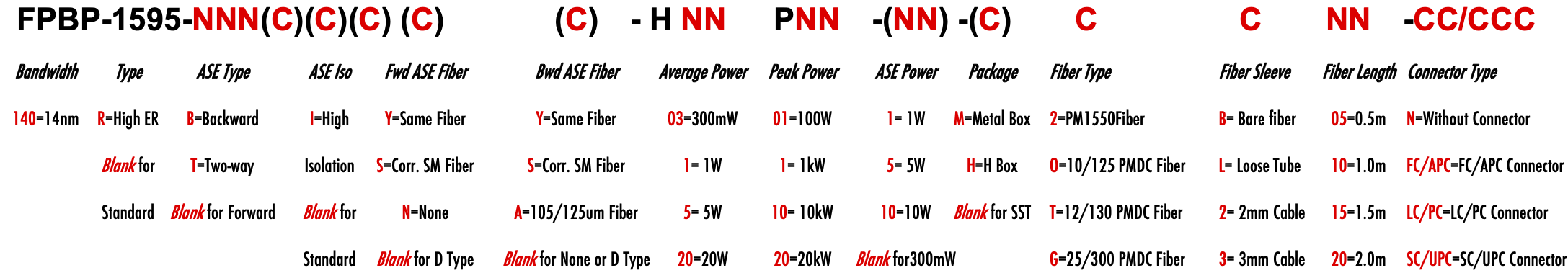 FPBP FPWM 1595nm Singlemode PM Fiber Bandpass Filter Bandwidth 14nm 14.0nm bandstop filter or notch filter with bandwidth filtre passe-bande monomode ou filtre coupe-bande ou filtre coupe-bande avec bande passante filtro de paso de banda monomodo o filtro de supresión de banda o filtro de muesca con ancho de banda Singlemode-Bandpassfilter oder Bandsperrfilter oder Kerbfilter mit Bandbreite filtro passa-banda monomodo ou filtro bandstop ou filtro notch com largura de banda filtro passa-banda monomodale o filtro bandstop o filtro notch con larghezza di banda yksimuotoinen kaistanpäästösuodatin tai kaistanpysäytyssuodatin tai kaistanleveyssuodatin PM1550 LMA 8/125um 10/125um 10/130um 12/125um 12/130um 15/125um 15/130um 20/125um 20/130um 25/250um 25/300um 30/250um SC Single Clad Cladding DC Double Clad or large mode area fiber fibre à simple gaine ou fibre à double gaine ou fibre à grande zone de mode ingle Clad-Faser oder Double Clad-Faser oder Large-Mode-Area-Faser ibra con revestimiento simple o fibra con revestimiento doble o fibra de área modal grande fibra de revestimento simples ou fibra de revestimento duplo ou fibra de área de modo grande ibra a rivestimento singolo o fibra a doppio rivestimento o fibra a grande area modale yksikerroksinen kuitu tai kaksinkertainen kuitu tai suurimuotoinen kuitu 2-port D Type 3-port Y Type 4-port X Type Type D à 2 ports Type Y à 3 ports Type X à 4 ports -Port-D-Typ 3-Port-Y-Typ 4-Port-X-Typ Tipo D de 2 puertos Tipo Y de 3 puertos Tipo X de 4 puertos Tipo D de 2 portas Tipo Y de 3 portas Tipo X de 4 portas ipo D a 2 porte Tipo Y a 3 porte Tipo X a 4 porte 2-porttinen D-tyyppi 3-porttinen Y-tyyppi 4-porttinen X-tyyppi Polarization Maintaining PM Extinction Ratio ER Panda tie maintien de la polarisation fibre panda ou cravate avec taux d'extinction polarisationserhaltende Panda- oder Bindefaser mit Extinktionsverhältnis polarización manteniendo panda o fibra de amarre con relación de extinción polarização mantendo a fibra panda ou tie com taxa de extinção polarizzazione mantenendo panda o legare fibra con rapporto di estinzione olarisaatiota ylläpitävä panda- tai sidekuitu ekstinktiosuhteella