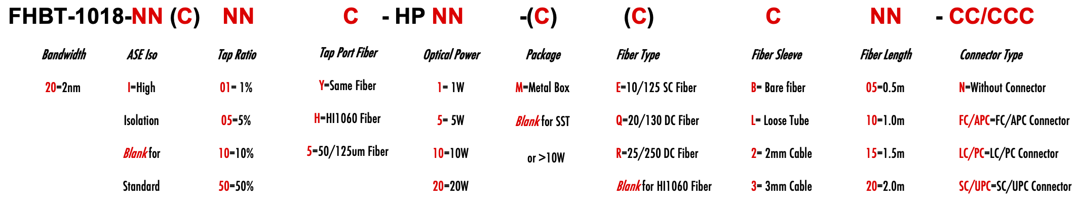FHBT 1018nm Singlemode SM Fiber Bandpass Filter Tap coupler splitter Hybrid Bandwidth 2nm optical fiber bandpass filter with tap coupler or splitter hybrid device or bandstop filter Glasfaser-Bandpassfilter mit Abzweigkoppler oder Splitter-Hybridgerät oder Bandsperrfilter Filtro de paso de banda de fibra óptica con acoplador de grifo o dispositivo híbrido divisor o filtro de banda filtre passe-bande à fibre optique avec coupleur de prise ou dispositif hybride séparateur ou filtre coupe-bande optinen kuitukaistanpäästösuodatin, jossa on väliliitin tai jakajahybridilaite tai kaistanstop-suodatin filtro passa-banda de fibra óptica com acoplador de torneira ou dispositivo híbrido divisor ou filtro de parada de banda ?wiat?owodowy filtr pasmowo-przepustowy z hybrydowym urz?dzeniem sprz?gaj?cym lub rozdzielaczem lub filtrem pasmowym optisk fiber båndpassfilter med tappkopler eller splitter hybridenhet eller båndstoppfilter filtro passa banda in fibra ottica con accoppiatore di presa o dispositivo ibrido sdoppiatore o filtro elimina banda glasvezelbanddoorlaatfilter met kraankoppeling of splitter hybride apparaat of bandstopfilter pásmový filtr s optickým vláknem s odbo?ovacím vazebním ?lenem nebo rozbo?ovacím hybridním za?ízením nebo pásmovým filtrem HI1060 1060XP LMA 6/125um 10/125um 10/130um 12/125um 12/130um 15/125um 15/130um 20/125um 20/130um 25/250um 30/250um SC Single Clad Cladding DC Double Clad or large mode area fiber fibre à simple gaine ou fibre à double gaine ou fibre à grande zone de mode ingle Clad-Faser oder Double Clad-Faser oder Large-Mode-Area-Faser ibra con revestimiento simple o fibra con revestimiento doble o fibra de área modal grande fibra de revestimento simples ou fibra de revestimento duplo ou fibra de área de modo grande ibra a rivestimento singolo o fibra a doppio rivestimento o fibra a grande area modale yksikerroksinen kuitu tai kaksinkertainen kuitu tai suurimuotoinen kuitu 2-port D Type 3-port Y Type 4-port X Type Type D à 2 ports Type Y à 3 ports Type X à 4 ports -Port-D-Typ 3-Port-Y-Typ 4-Port-X-Typ Tipo D de 2 puertos Tipo Y de 3 puertos Tipo X de 4 puertos Tipo D de 2 portas Tipo Y de 3 portas Tipo X de 4 portas ipo D a 2 porte Tipo Y a 3 porte Tipo X a 4 porte 2-porttinen D-tyyppi 3-porttinen Y-tyyppi 4-porttinen X-tyyppi