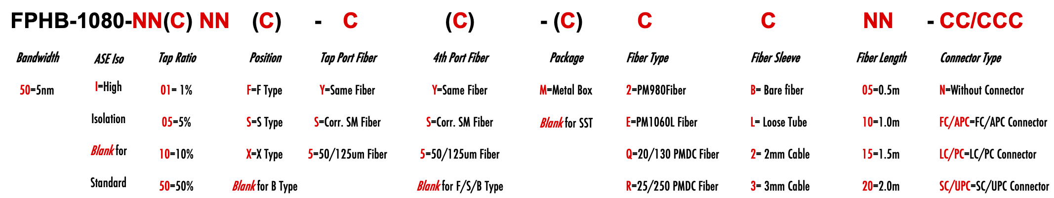 FPHB 1080nm Singlemode PM Fiber Bandpass Filter Tap coupler splitter Hybrid Bandwidth 5.0nm 5nm optical fiber bandpass filter with tap coupler or splitter hybrid device or bandstop filter Glasfaser-Bandpassfilter mit Abzweigkoppler oder Splitter-Hybridgerät oder Bandsperrfilter Filtro de paso de banda de fibra óptica con acoplador de grifo o dispositivo híbrido divisor o filtro de banda filtre passe-bande à fibre optique avec coupleur de prise ou dispositif hybride séparateur ou filtre coupe-bande optinen kuitukaistanpäästösuodatin, jossa on väliliitin tai jakajahybridilaite tai kaistanstop-suodatin filtro passa-banda de fibra óptica com acoplador de torneira ou dispositivo híbrido divisor ou filtro de parada de banda ?wiat?owodowy filtr pasmowo-przepustowy z hybrydowym urz?dzeniem sprz?gaj?cym lub rozdzielaczem lub filtrem pasmowym optisk fiber båndpassfilter med tappkopler eller splitter hybridenhet eller båndstoppfilter filtro passa banda in fibra ottica con accoppiatore di presa o dispositivo ibrido sdoppiatore o filtro elimina banda glasvezelbanddoorlaatfilter met kraankoppeling of splitter hybride apparaat of bandstopfilter pásmový filtr s optickým vláknem s odbo?ovacím vazebním ?lenem nebo rozbo?ovacím hybridním za?ízením nebo pásmovým filtrem PM980 PM980XP PM980HP LMA 6/125um 10/125um 10/130um 12/130um 15/125um 15/130um 20/125um 20/130um 25/250um 30/250um SC Single Clad Cladding DC Double Clad or large mode area fiber fibre à simple gaine ou fibre à double gaine ou fibre à grande zone de mode ingle Clad-Faser oder Double Clad-Faser oder Large-Mode-Area-Faser ibra con revestimiento simple o fibra con revestimiento doble o fibra de área modal grande fibra de revestimento simples ou fibra de revestimento duplo ou fibra de área de modo grande ibra a rivestimento singolo o fibra a doppio rivestimento o fibra a grande area modale yksikerroksinen kuitu tai kaksinkertainen kuitu tai suurimuotoinen kuitu 2-port D Type 3-port Y Type 4-port X Type Type D à 2 ports Type Y à 3 ports Type X à 4 ports -Port-D-Typ 3-Port-Y-Typ 4-Port-X-Typ Tipo D de 2 puertos Tipo Y de 3 puertos Tipo X de 4 puertos Tipo D de 2 portas Tipo Y de 3 portas Tipo X de 4 portas ipo D a 2 porte Tipo Y a 3 porte Tipo X a 4 porte 2-porttinen D-tyyppi 3-porttinen Y-tyyppi 4-porttinen X-tyyppi Polarization Maintaining PM Extinction Ratio ER Panda tie maintien de la polarisation fibre panda ou cravate avec taux d'extinction polarisationserhaltende Panda- oder Bindefaser mit Extinktionsverhältnis polarización manteniendo panda o fibra de amarre con relación de extinción polarização mantendo a fibra panda ou tie com taxa de extinção polarizzazione mantenendo panda o legare fibra con rapporto di estinzione olarisaatiota ylläpitävä panda- tai sidekuitu ekstinktiosuhteella