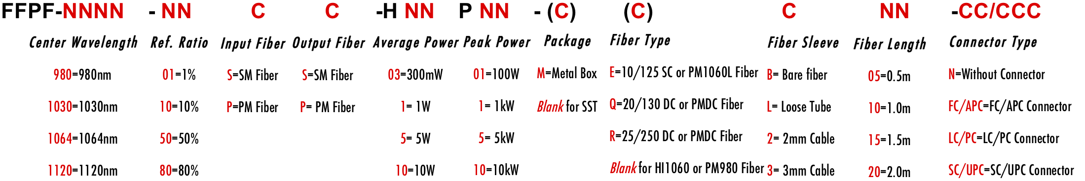 FFPF 1040nm 1020nm 1060nm 1025nm 1030nm 1035nm 1036nm 1045nm 1050nm 1053nm 1055nm 1056nm Partial Reflective Fiber Mirror Polarization Insensitive Teilweise reflektierende Faserspiegelpolarisation unempfindlich Polarizzazione parziale dello specchio in fibra riflettente insensibile Parcial reflectante de fibra espejo polarización insensible Polarização reflexiva parcial do espelho de fibra insensível Miroir à fibre réfléchissante partielle insensible à la polarisation Osittain heijastava kuitupeili, polarisaatio herkkä HI1060 1060XP PM980 PM980XP PM980HP LMA 6/125um 10/125um 10/130um 12/130um 15/125um 15/130um 20/125um 20/130um 25/250um 30/250um SC Single Clad PMSC Cladding DC PMDC Double Clad Polarization Maintaining PM Extinction Ratio ER Panda