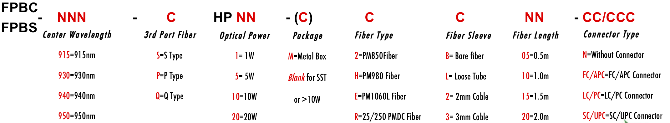 FPBC FPBS 930nm 910nm 950nm 915nm 920nm 925nm 935nm 940nm 945nm Fiber optical polarization beam combiner and splitter with polarization sensitive optics Combinador e divisor de feixe de polarização óptica de fibra com óptica sensível à polarização Combinador y divisor de haz de polarización de fibra óptica con óptica sensible a la polarización Combinatore e splitter di fascio di polarizzazione ottica in fibra con ottica sensibile alla polarizzazione Kuituoptisen polarisointisäteen yhdistin ja jakaja polarisaatioherkällä optiikalla Combinateur et séparateur de faisceau de polarisation à fibre optique avec optique sensible à la polarisation Faseroptischer Polarisationsstrahlkombinierer und -teiler mit polarisationsempfindlicher Optik ?wiat?owodowy ??cznik i rozdzielacz wi?zki polaryzacyjnej z optyk? wra?liw? na polaryzacj? HI780 780HP PM850 PM980 PM780HP 5/125um 4/125um HI1060 1060XP LMA 6/125um 10/125um 10/130um 12/125um 12/130um 15/125um 15/130um 20/125um 20/130um 25/250um 30/250um SC Single Clad PMSC Cladding DC PMDC Double Clad Polarization Maintaining PM Extinction Ratio ER Panda