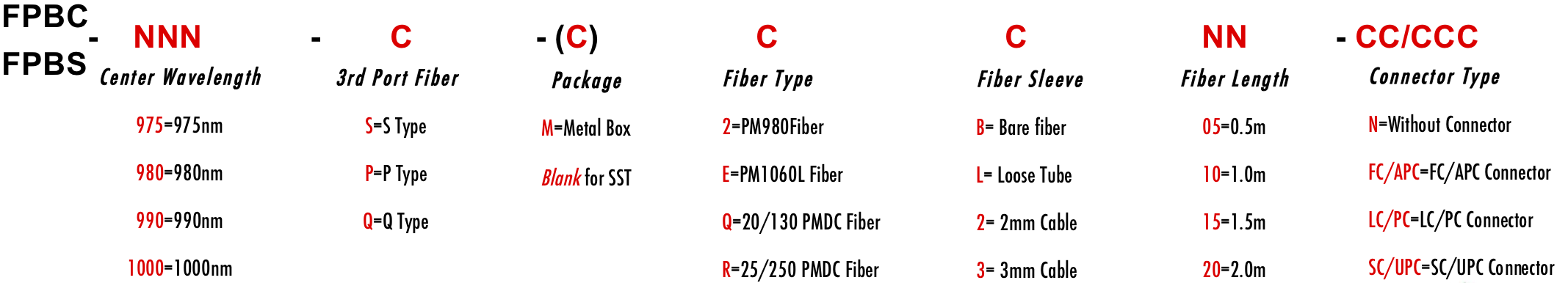 FPBC FPBS 990nm 970nm 1010nm 975nm 976nm 980nm 985nm 995nm 1000nm 1005nm 1006nm Fiber optical polarization beam combiner and splitter with polarization sensitive optics Combinador e divisor de feixe de polarização óptica de fibra com óptica sensível à polarização Combinador y divisor de haz de polarización de fibra óptica con óptica sensible a la polarización Combinatore e splitter di fascio di polarizzazione ottica in fibra con ottica sensibile alla polarizzazione Kuituoptisen polarisointisäteen yhdistin ja jakaja polarisaatioherkällä optiikalla Combinateur et séparateur de faisceau de polarisation à fibre optique avec optique sensible à la polarisation Faseroptischer Polarisationsstrahlkombinierer und -teiler mit polarisationsempfindlicher Optik ?wiat?owodowy ??cznik i rozdzielacz wi?zki polaryzacyjnej z optyk? wra?liw? na polaryzacj? HI1060 1060XP PM980 PM980XP PM980HP LMA 6/125um 10/125um 10/130um 12/130um 15/125um 15/130um 20/125um 20/130um 25/250um 30/250um SC Single Clad PMSC Cladding DC PMDC Double Clad Polarization Maintaining PM Extinction Ratio ER Panda