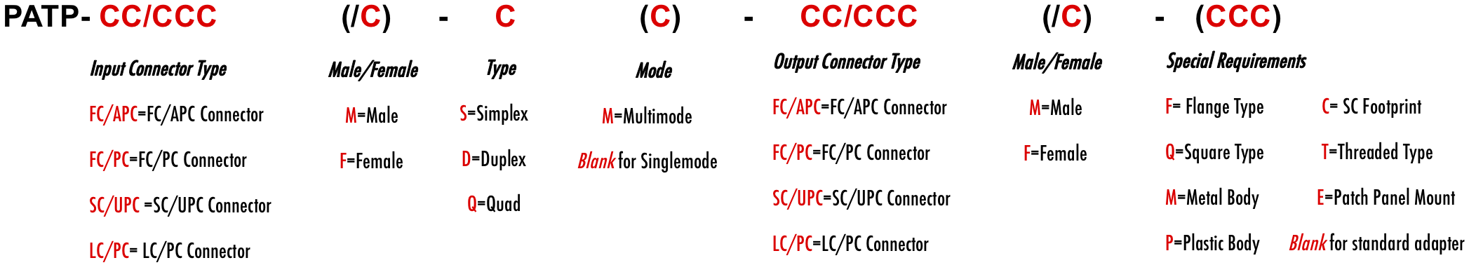 FC/SC/LC/MU/ST/E2000/MT-RJ/MTP/MPO/PC/SPC/UPC/APC